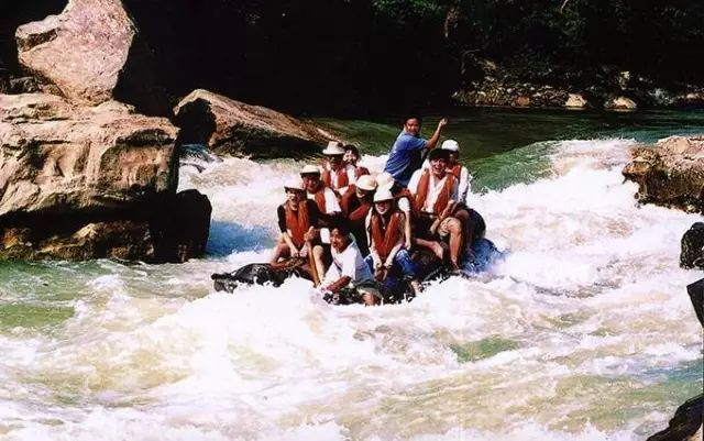 南溪河漂流水流湍急,两岸有原始亚热带丛林风光,岸边竹林婆娑,远山一片黛绿,而且群山对峙、连绵起伏,沿河怪石林立,古树遮天蔽日,古腾蔓枝攀岸附壁,河面忽宽忽窄,忽曲忽直,一曲一景,河水忽急忽缓,游客在漂流时穿上救生衣可下河游泳,也可坐在船上互相泼水嬉玩,也可到沙滩玩耍、拍照。漂流其间有惊无险,其乐无穷。是历险、猎奇、拾趣的好去处。同时,一次漂流还能领略中越两国风情。