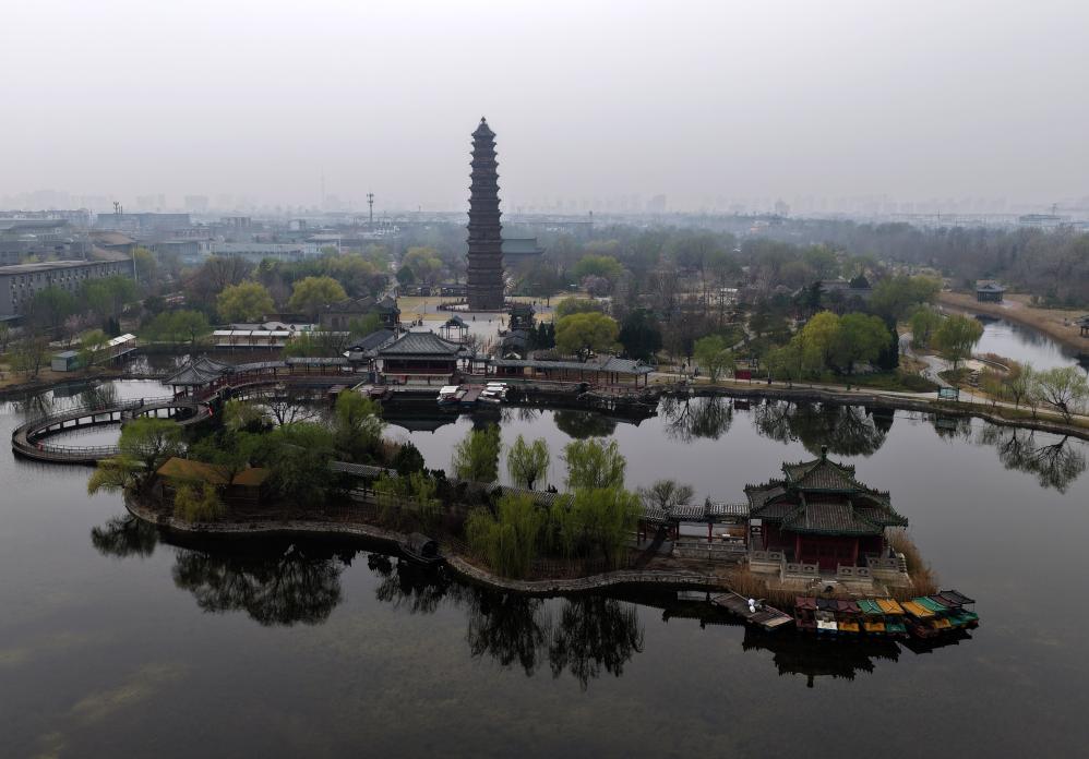 图为开封铁塔(2026年3月23日摄,无人机照片)。新华社记者 李嘉南 摄