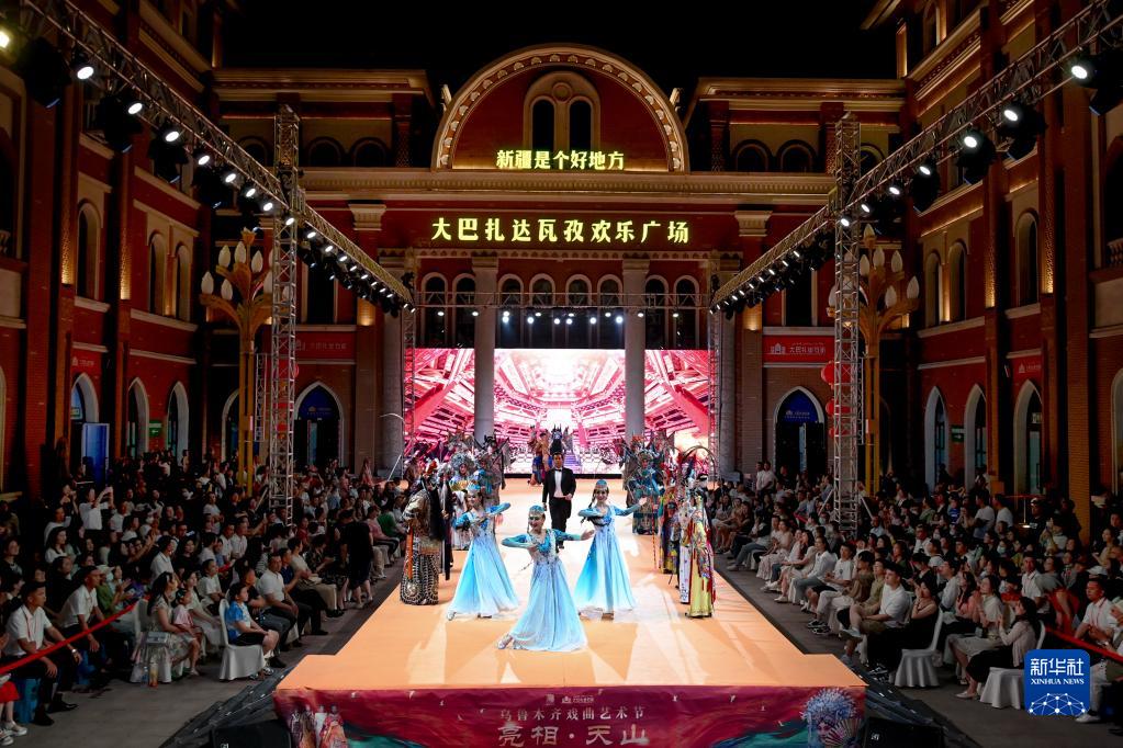 6月22日,乌鲁木齐戏曲艺术节闭幕式暨“亮相·天山”时尚京剧秀活动在位于乌鲁木齐市的新疆国际大巴扎景区举办。时尚京剧秀将国粹京剧与时装演艺跨界融合,为市民和游客带来一场视觉盛宴。