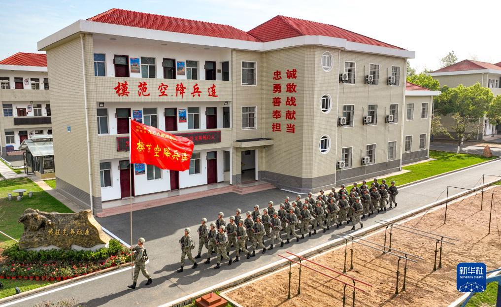 空降兵某旅“黄继光英雄连”官兵出发前往野外驻训地(2023年4月8日摄)。新华社发(王宝强 摄)