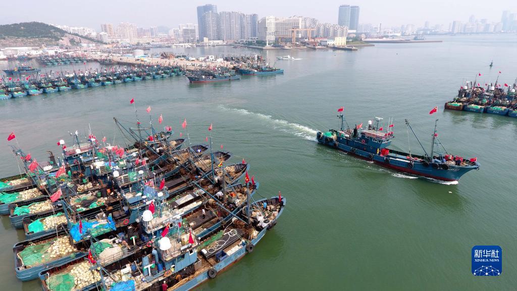 当日,为期四个月的黄渤海伏季休渔结束,所涉渔区迎来“开海”,各渔港码头千帆竞发,渔船出海进行捕捞作业。