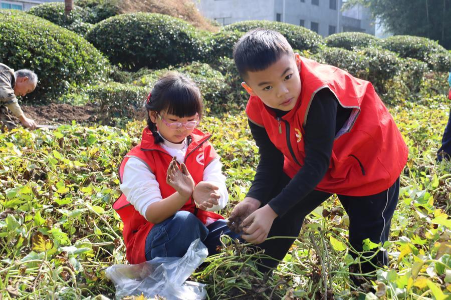 湖北省恩施州鹤峰县容美镇白鹤井社区开展挖红薯农耕体验活动。新华社发