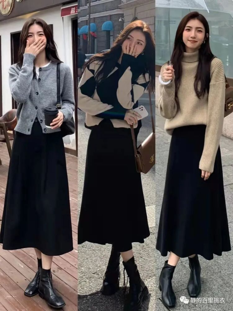 同时还可以在脚下去搭配上短靴,这样能够和你的裙装风格形成一定对比,让造型看上去不那么沉闷,大大提升你的时尚感。