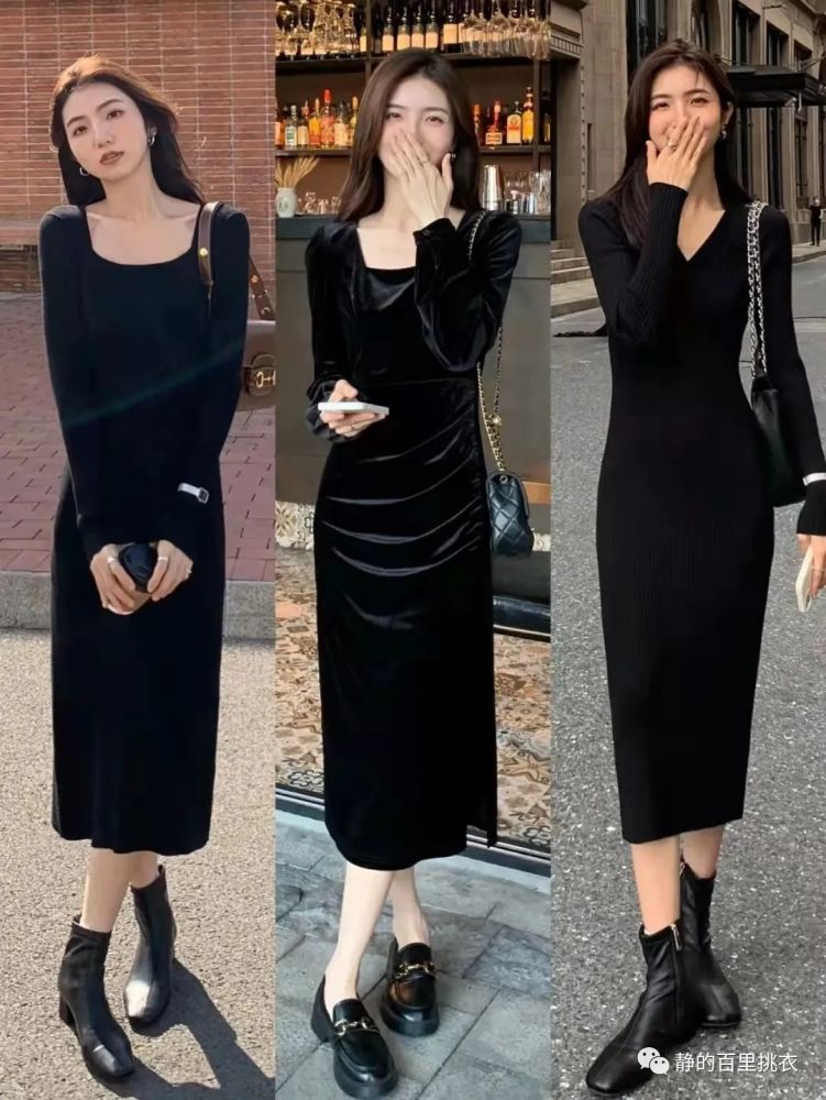 连衣裙虽然都是一些低调的黑色款,但由于改变了它的材质,就能够瞬间带来焕然一新的感觉,时尚度大大增强。