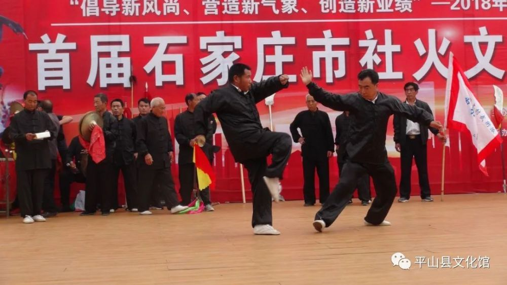 东岗上武术会是流传于平山县平山镇东岗上村的一种武术传承发展的组织形态。其所拥有的功夫门类较为齐全,各种拳术、枪术、刀术及对练、单练、套路、古代阵法均有传承,十八般器械样样俱全。其中“八门九锁莲花大阵”(相传由诸葛亮“八门金锁阵”发展而来)和攀龙棍法(相传由赵匡胤传承而来)为本村独有功夫。东岗上村习武者之间因武术而结缘、结“亲朋”,遇上红白喜事互相之间礼尚往来,这种东岗上村特有的“以武结亲”的人际关系形态在当地被称为“东岗上武术会”。
