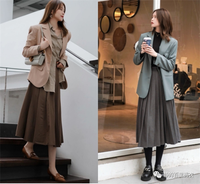 在搭配的时候,你可以将各种外套敞开穿,露出内搭体现层次感。里面叠穿针织衫或者叠穿西装都很好看。同时能展现多种风格,用这种宽松的西装搭配上针织衫,然后再通过搭配半身裙凸显女人味,魅力四射。