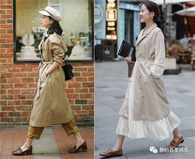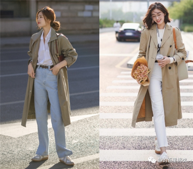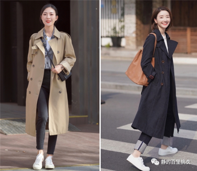 风衣长度基本都在小腿附近,刚刚好,不会显得违和,然后再搭配九分裤也比较利落,一点都不拖沓。