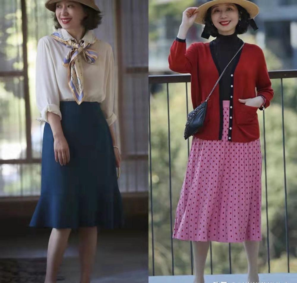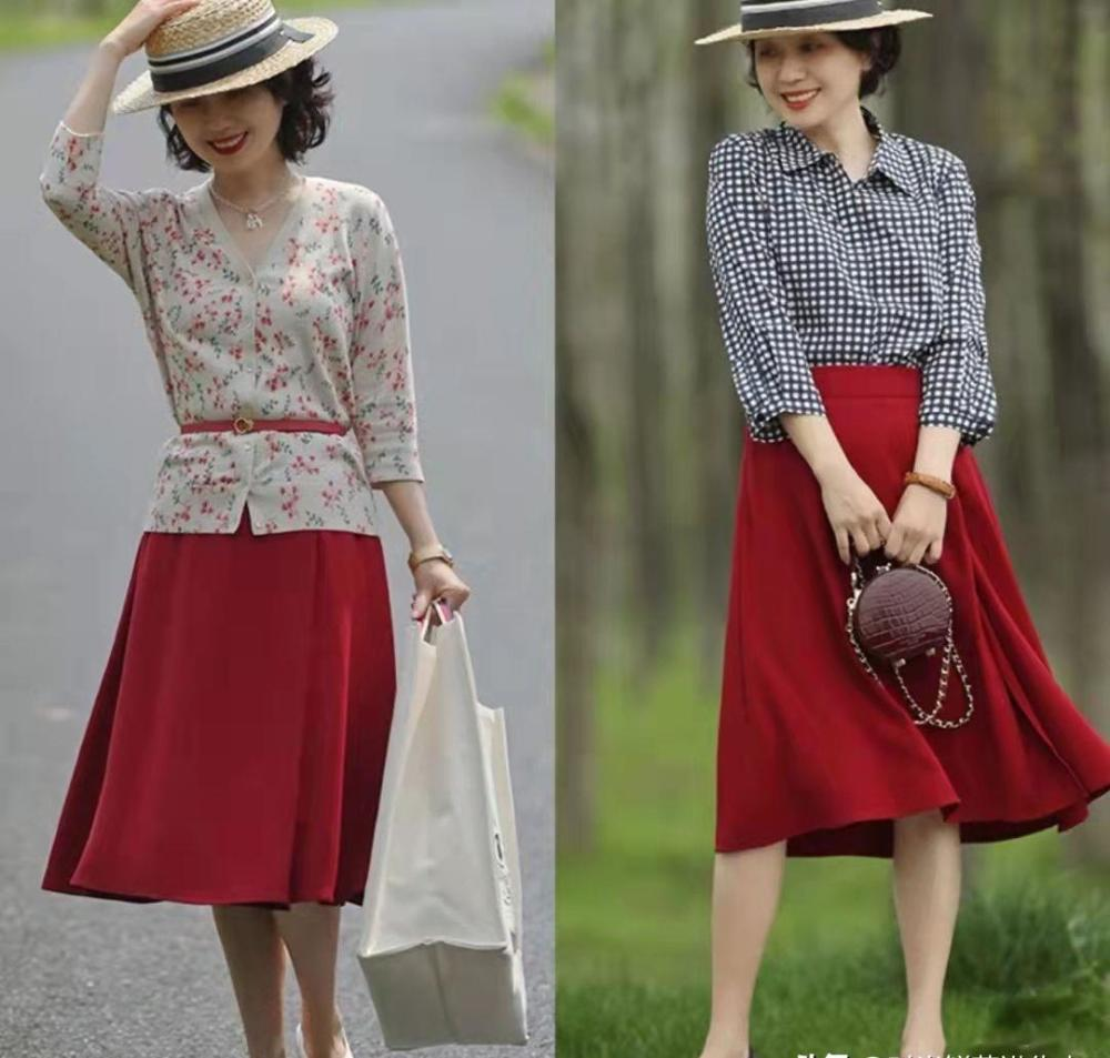 相信不少中年女人误认为,上了年纪就应该选择颜色花哨的衣服,只有这样才能为我们达到减龄的穿衣作用。然而,事实却刚好相反。服饰的颜色越复杂花哨,越容易在穿着上显老,还会给人一种眼花缭乱的穿衣感觉。比如右图这款红色开衫就很适合中年女人选择,但下半身穿的粉色波点百褶裙却拉低了穿衣的品味,看起来花哨许多,并不适合腿型发福的中年女人驾驭。