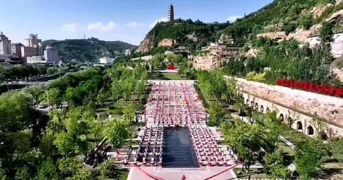 日前,延安红鼓创始人陆宝满怀豪情擂动延安第一鼓,带领101面延安红鼓、303面安塞腰鼓、22条舞龙和101位志愿者在宝塔山星火广场震撼演绎《鼓舞延安》,红旗招展、花鞭翩飞,似金蛇起舞,为广大游客和市民献上了一场精彩异常的鼓乐盛宴。