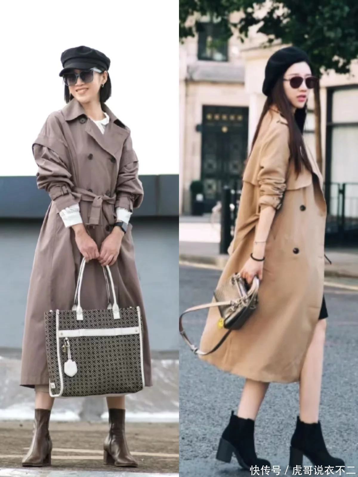 接下来看看时尚博主是怎么穿搭风衣+粗跟靴的吧!