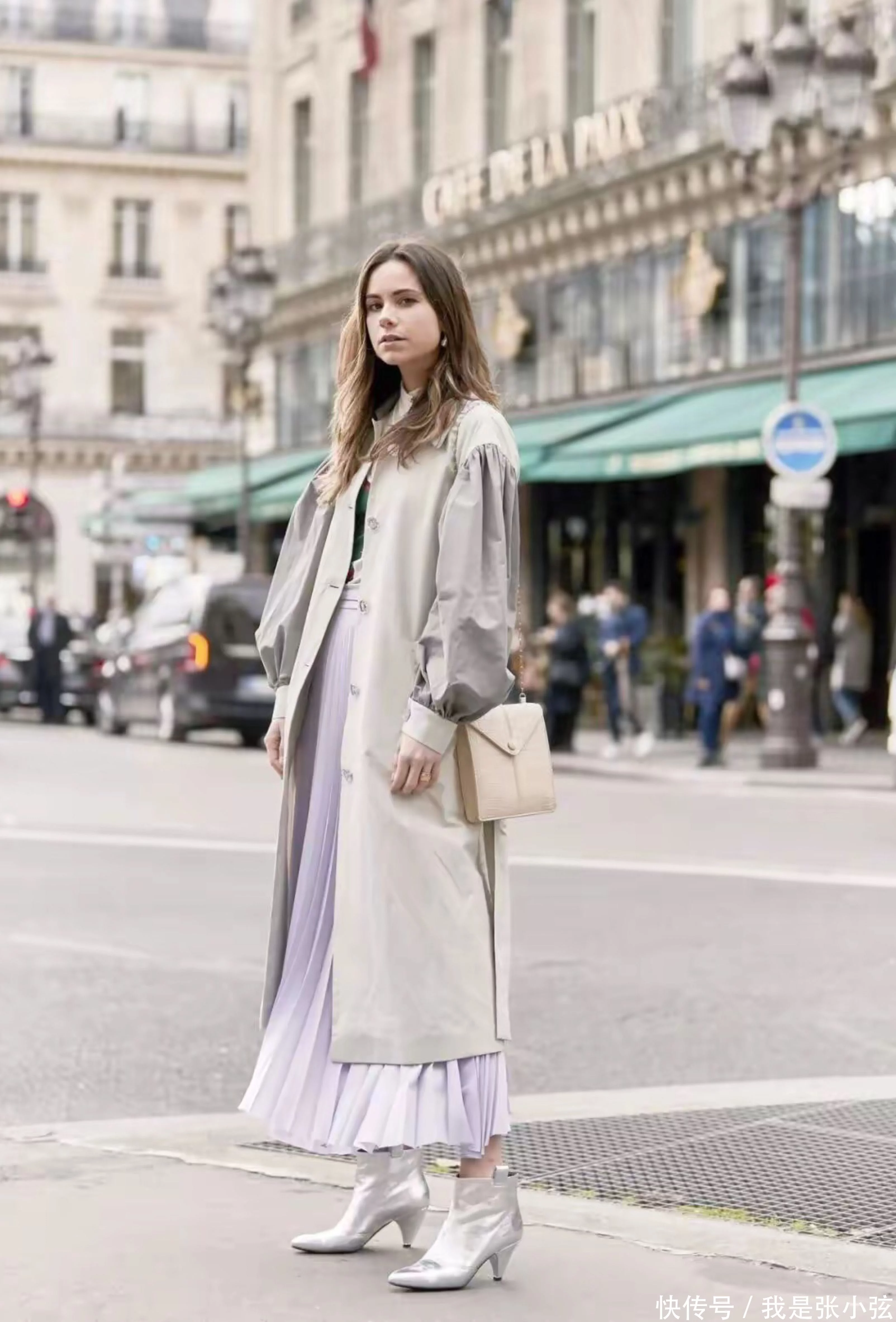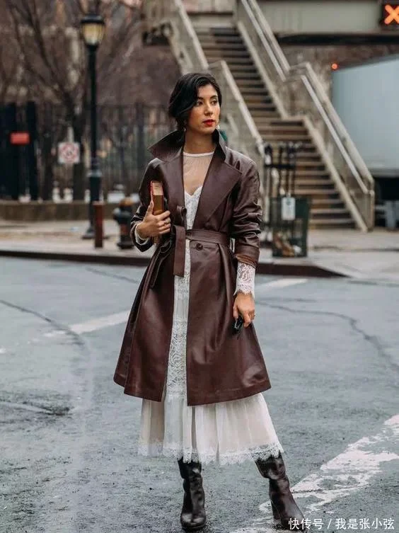 2.不同的材质组合,能够彰显出风衣和裙装的独特之处,软硬兼备是专属时髦女性的搭配条件。