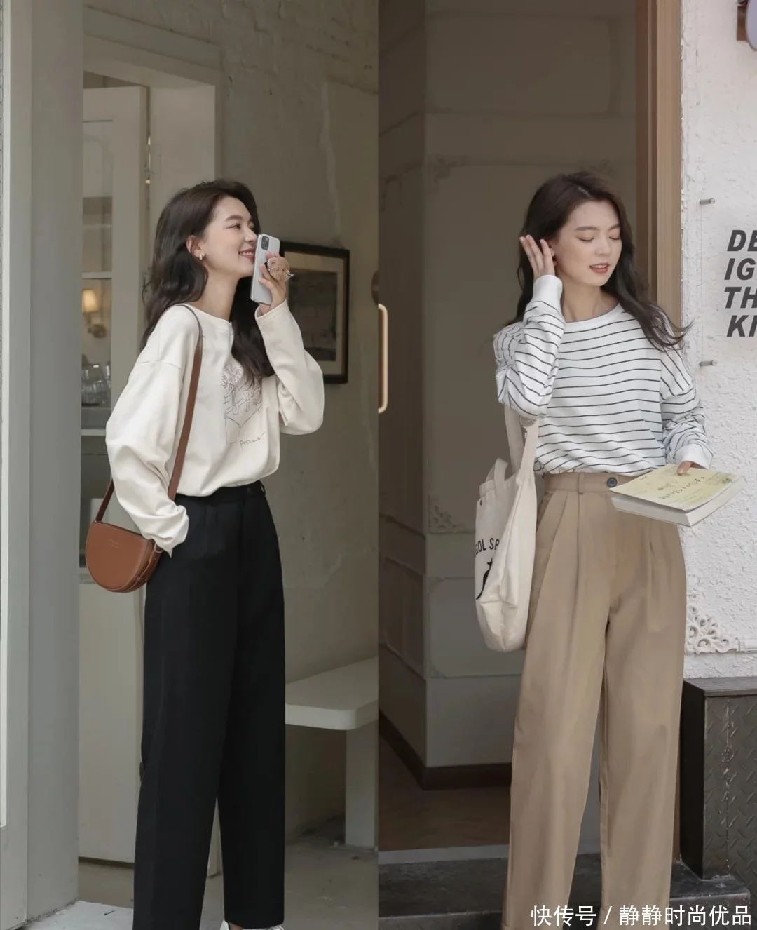 例如这两条长裤,它们的颜色都特别的基础百搭,可以帮助女性在穿衣方面更加灵活,运用各类基础颜色和这种常规的裤装配合,也能轻轻松松展现出完整且大气的look。