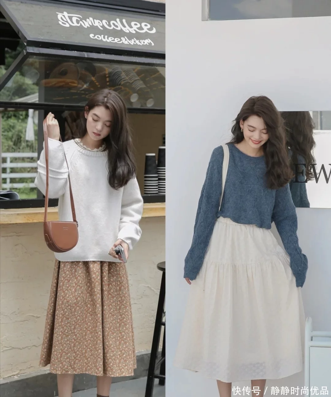 这个秋天,可以采取套头针织毛衣和过膝半身裙的配合,不过,裙装的轮廓塑造可以宽松一点,这样对腿型没有要求,穿起来还特别的方便。