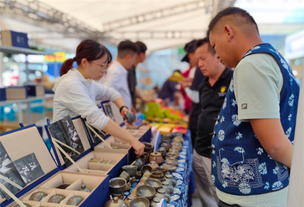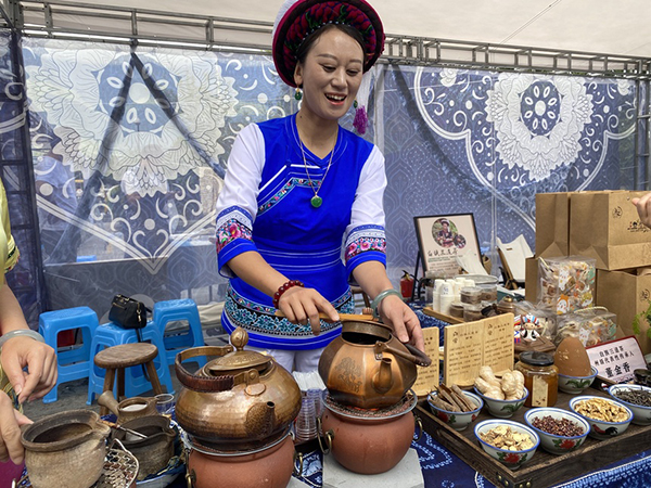 从剑川木雕、鹤庆银器,再到白族扎染、大理白族“三道茶”和洱源雕梅……各项非遗技艺在市集中得到充分展示,在每个点位上,传承人认真推介着各自的传承项目,让非遗的独特魅力持续散发。
