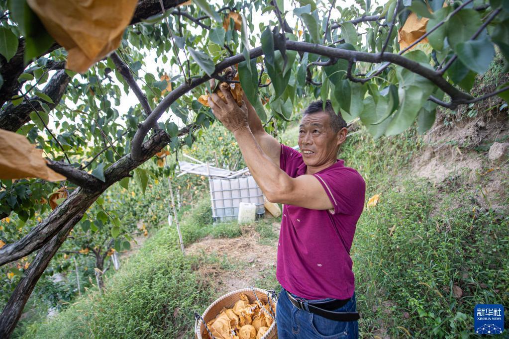 9月20日,云和县元和街道梨庄村种植户在采摘雪梨。