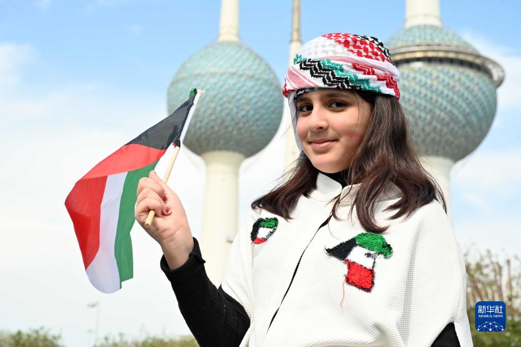 2月25日,一名女孩在科威特首都省参加庆祝活动。