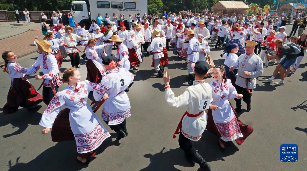 当日,一场民族舞蹈比赛在白俄罗斯维捷布斯克举行。新华社发(任科夫摄)