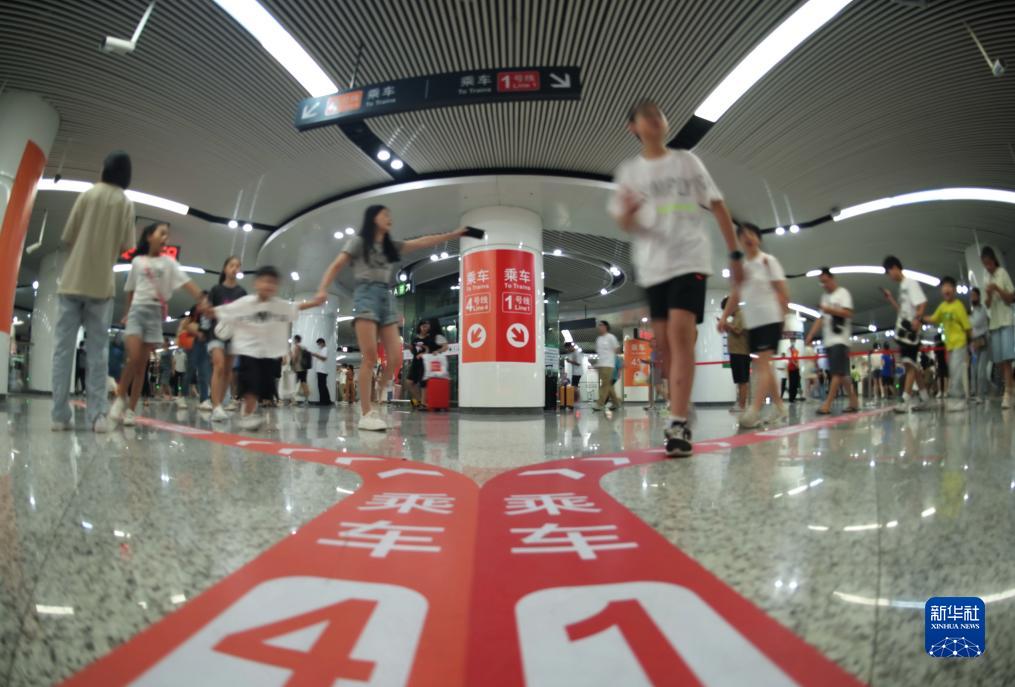 8月27日,乘客在福州地铁东街口站进行1号线和4号环线换乘。