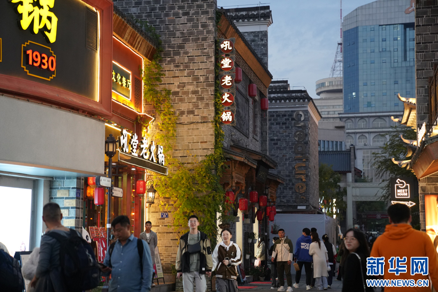 夜幕降临,万寿宫历史文化街区逐渐热闹起来。新华网发