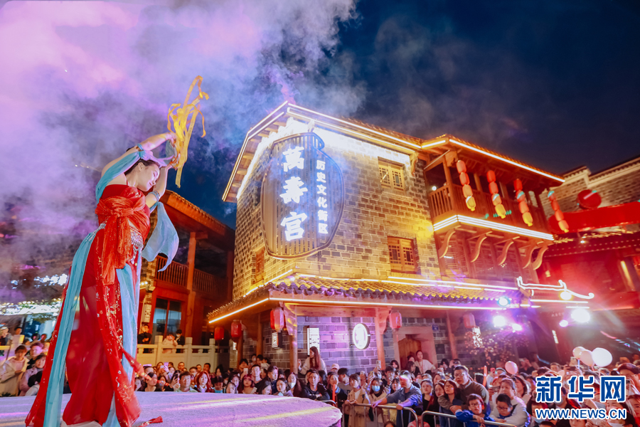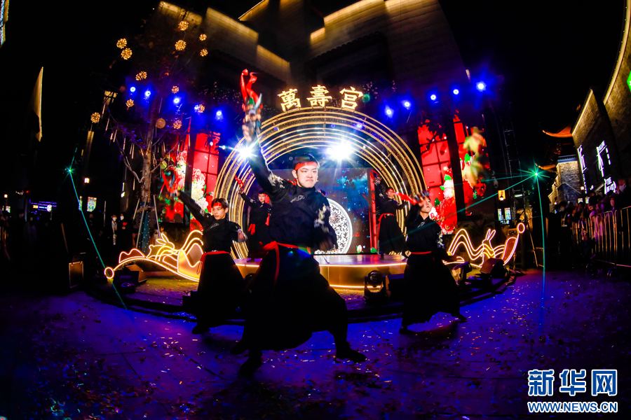 万寿宫历史文化街区内的舞蹈表演。新华网发