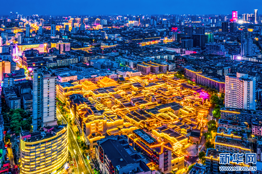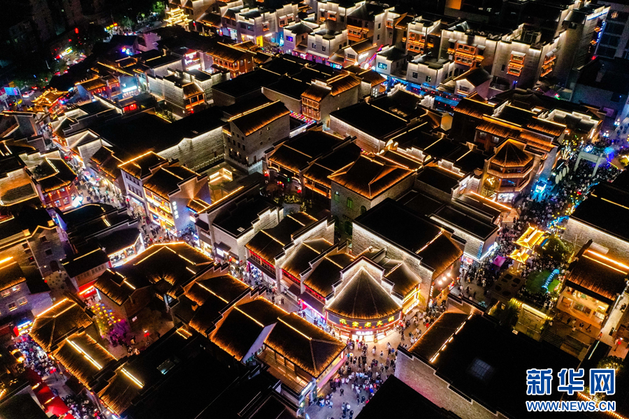 夜幕降临,万寿宫历史文化街区灯光璀璨。新华网发