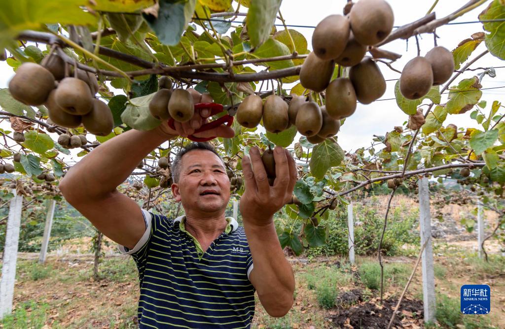 9月1日,村民在贵州省黔西市定新乡青杠村采收猕猴桃。