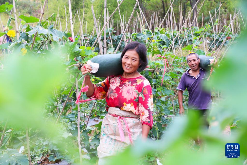 9月1日,湖南省永州市新田县陶岭镇牛塘村村民在采收冬瓜。