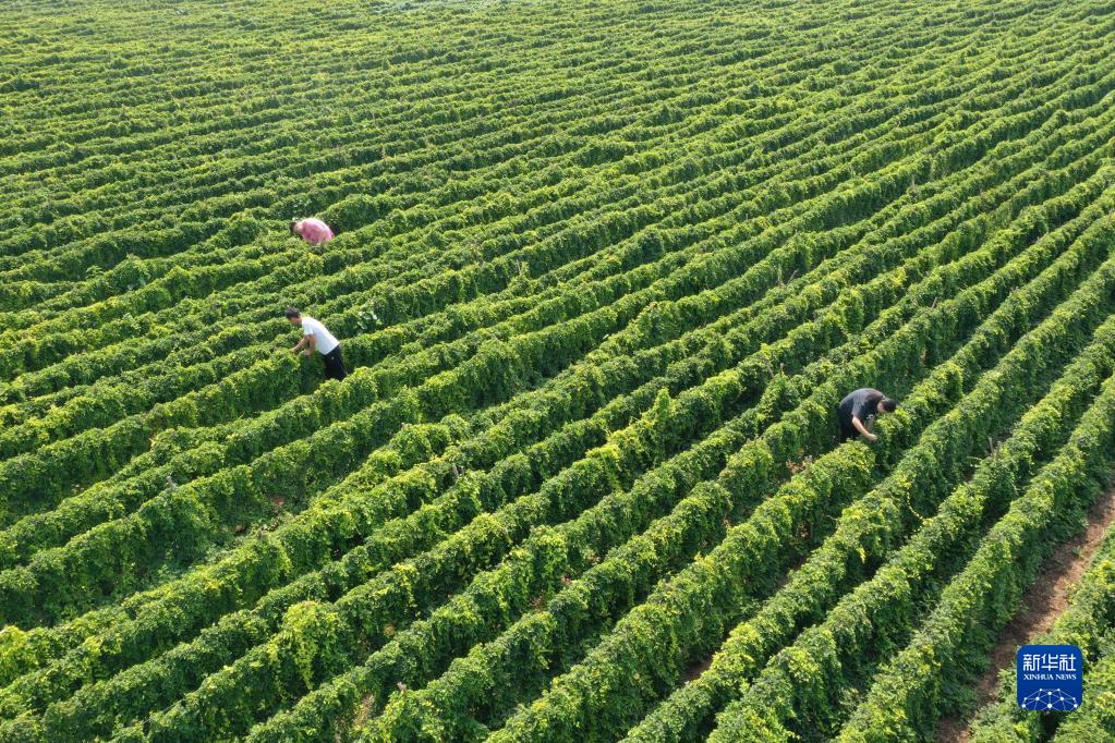 9月1日,河南省焦作市温县黄庄镇米庄村村民在铁棍山药种植基地管理铁棍山药。