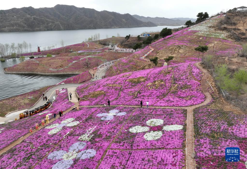 近日,河北省迁西县旧城乡北孙家峪村大黑汀水库东岸500多亩芝樱竞相绽放,吸引游客前来赏花游玩。