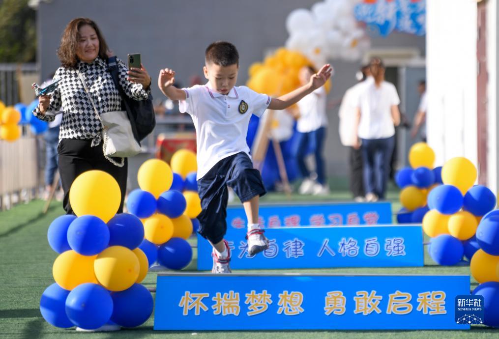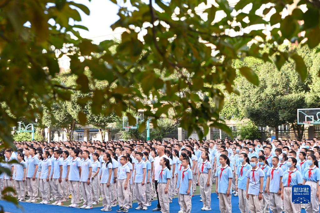 当日,乌鲁木齐各中小学开学,师生迎接新学年的开始。