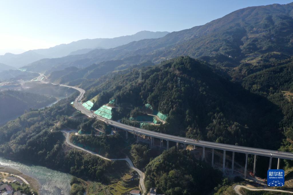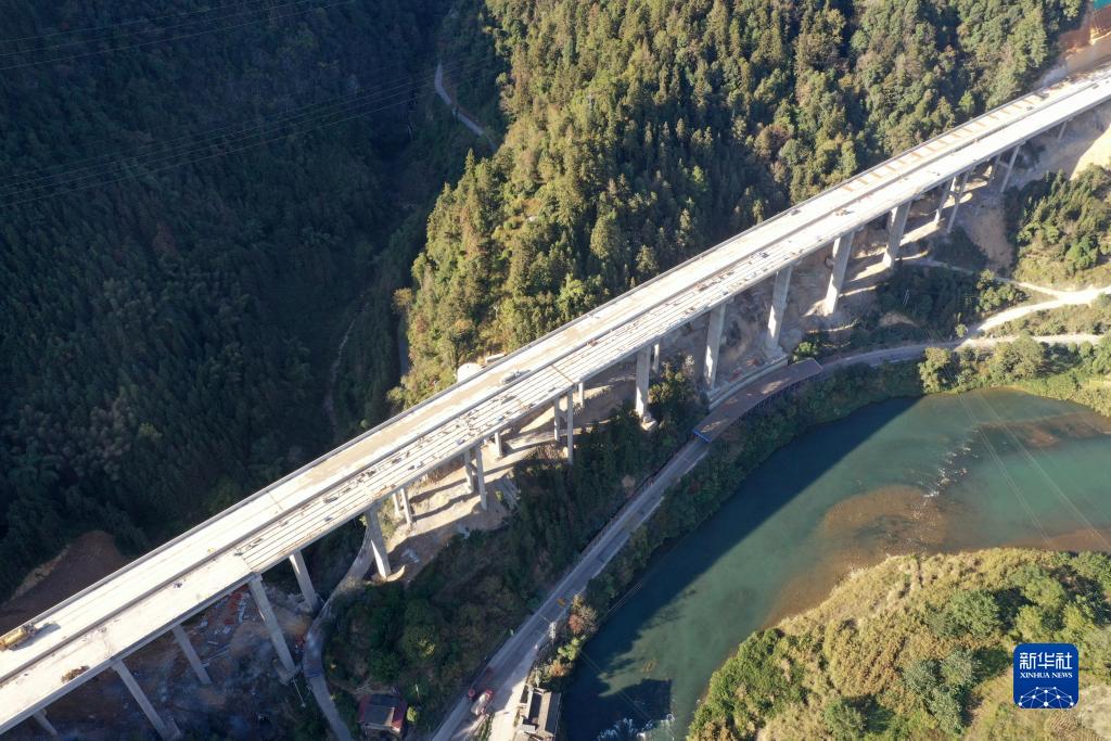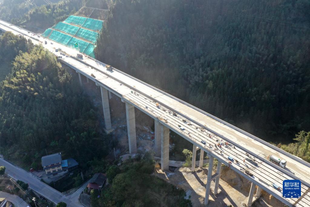这是建设中的广西龙胜各族自治县境内的龙胜至城步高速公路(无人机照片,11月28日摄)。