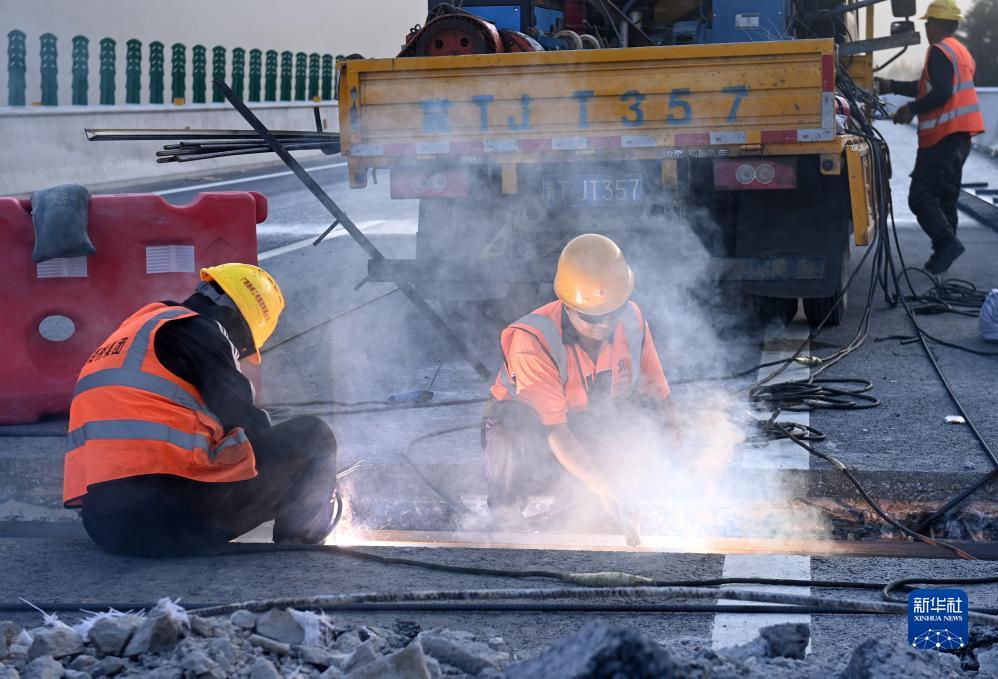 11月28日,在广西龙胜各族自治县境内,工人在建设龙胜至城步高速公路。