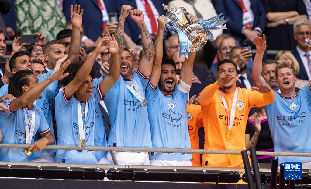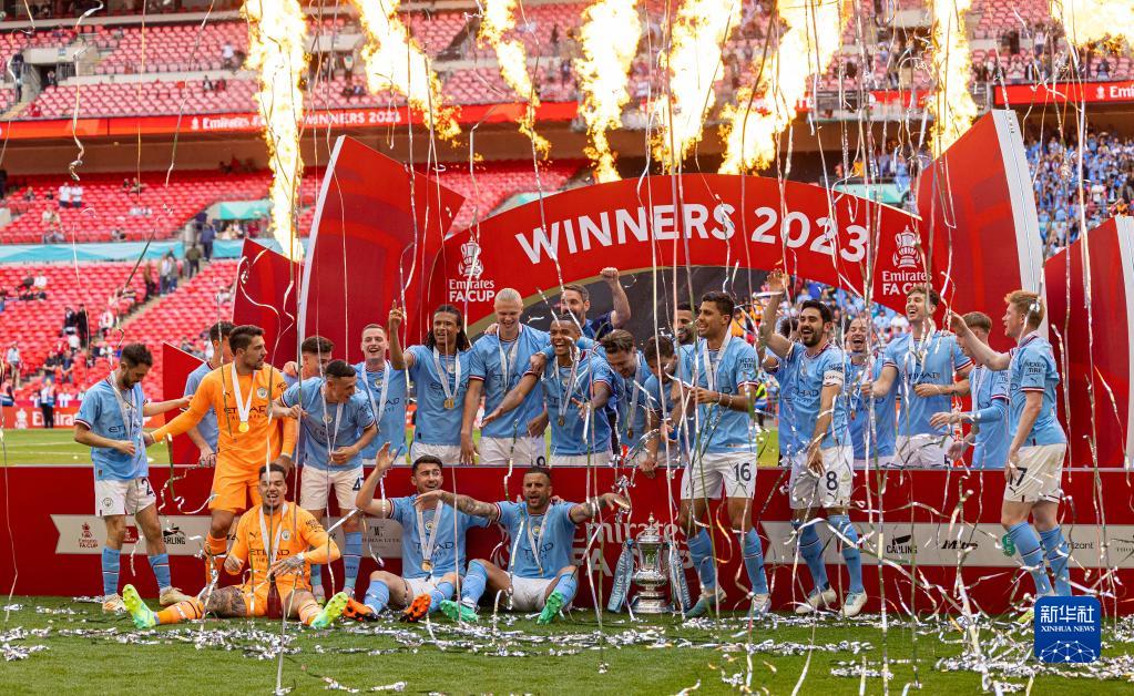 当日,在2022-2023赛季英格兰足总杯决赛中,曼彻斯特城队以2比1战胜曼彻斯特联队,夺得冠军。