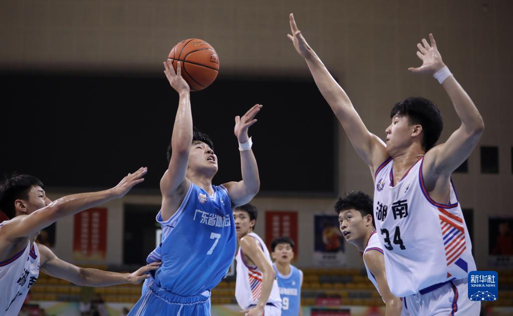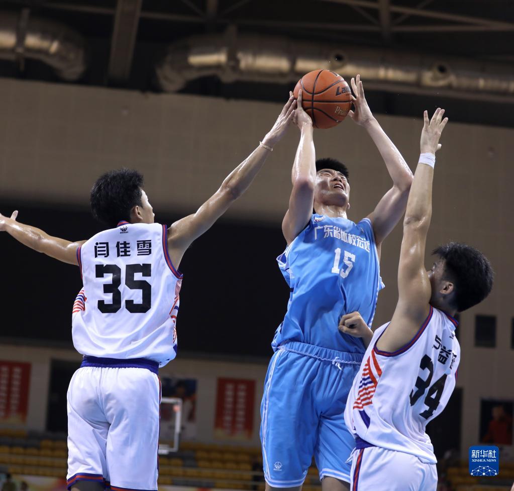 6月30日,广东省体校宏远队球员王洪泽(中)在比赛中突破上篮。新华社记者 姚剑锋 摄