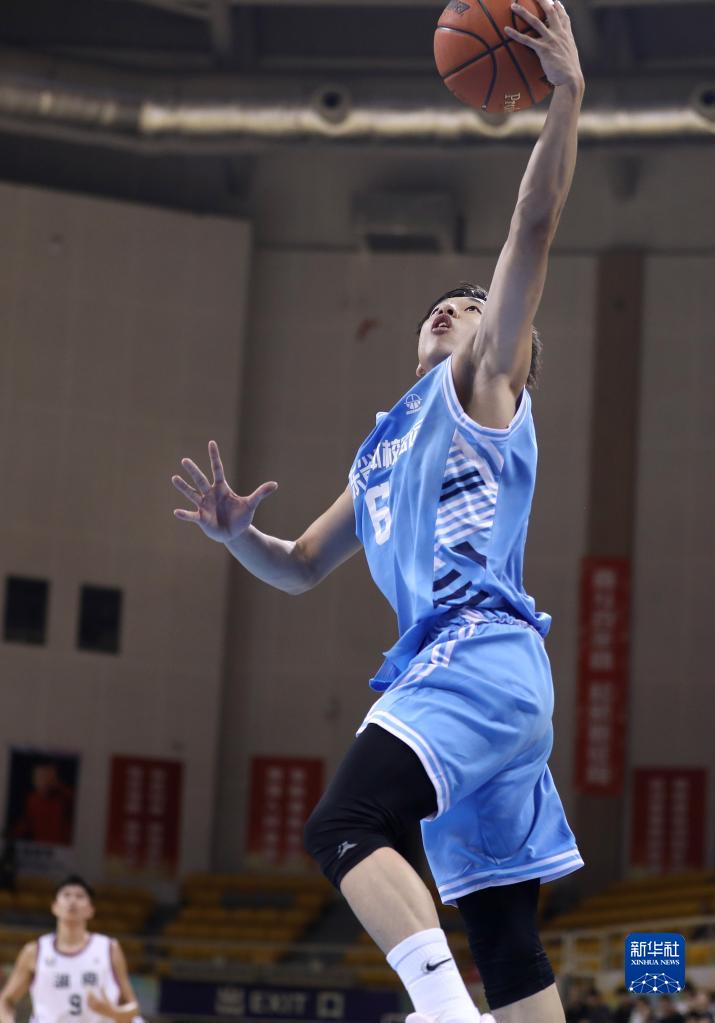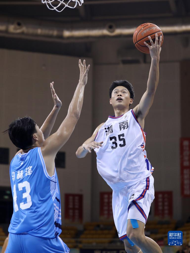 6月30日,湖南省队球员王磊(左)在比赛中突破上篮。新华社记者 姚剑锋 摄