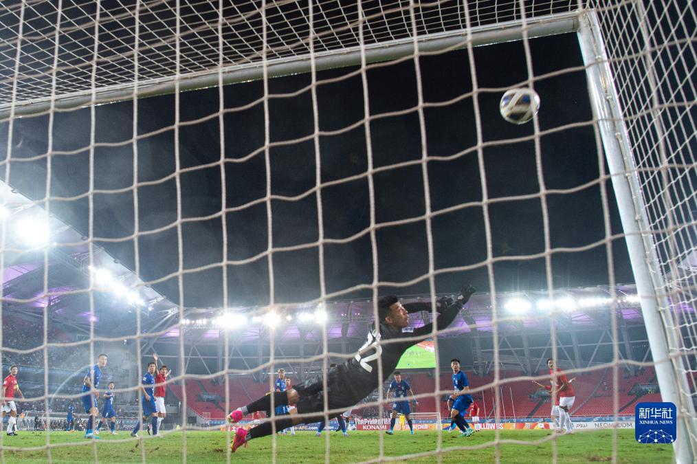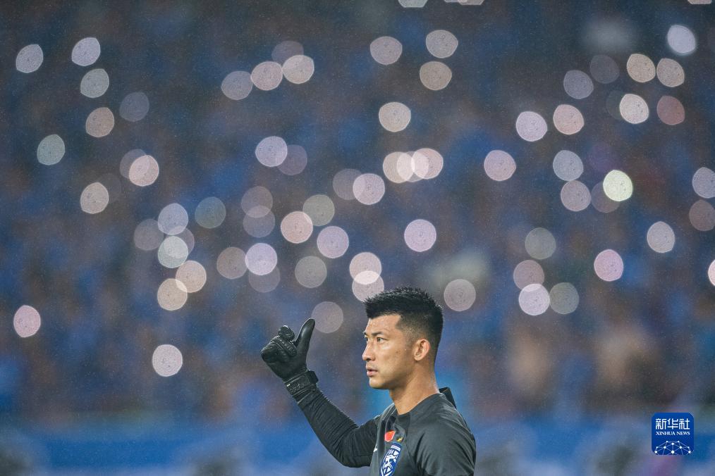 9月20日,武汉三镇队守门员刘殿座在比赛中。新华社记者 肖艺九 摄