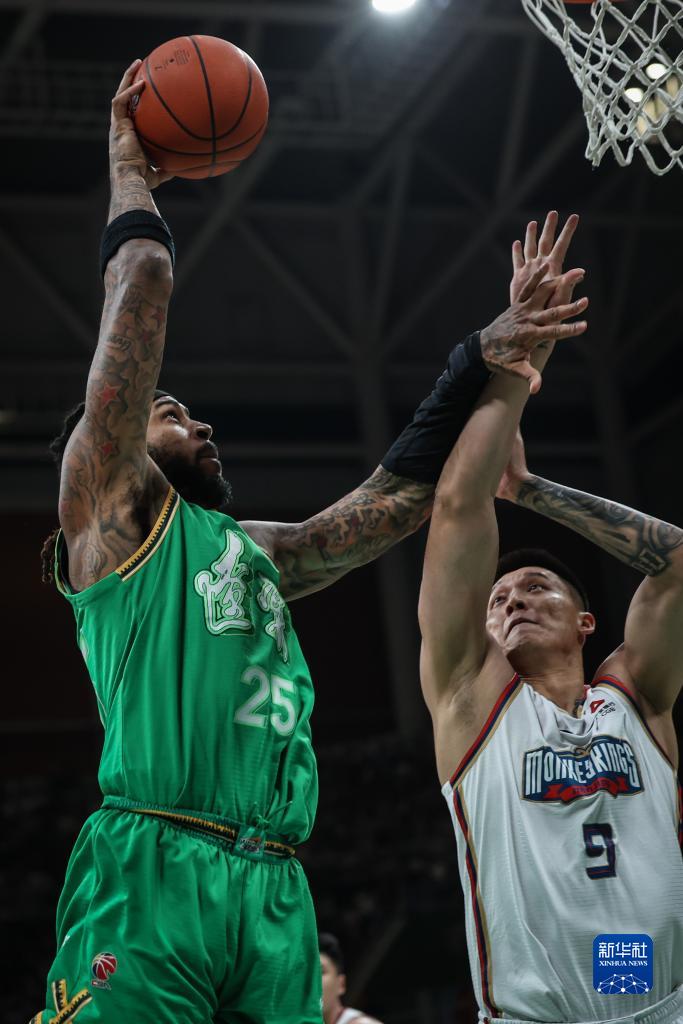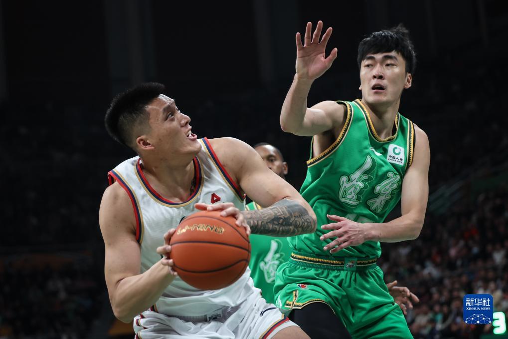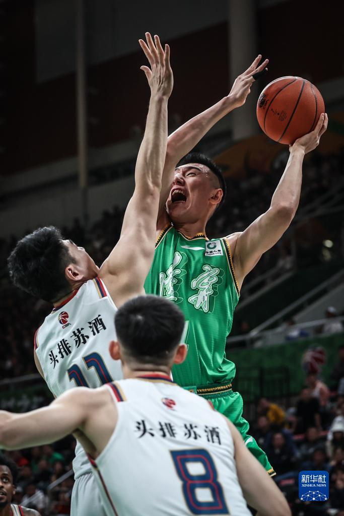 10月21日,南京头排苏酒队球员曾繁日(左)在比赛中持球进攻。新华社记者 潘昱龙 摄