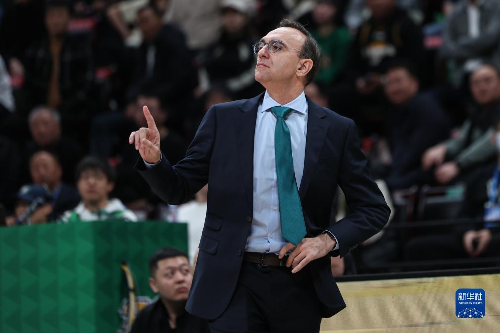 10月21日,辽宁本钢队主教练乌戈在比赛中指挥。新华社记者 潘昱龙 摄