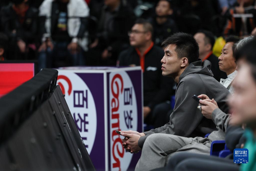 10月21日,辽宁本钢队球员郭艾伦在场边观赛。新华社记者 潘昱龙 摄