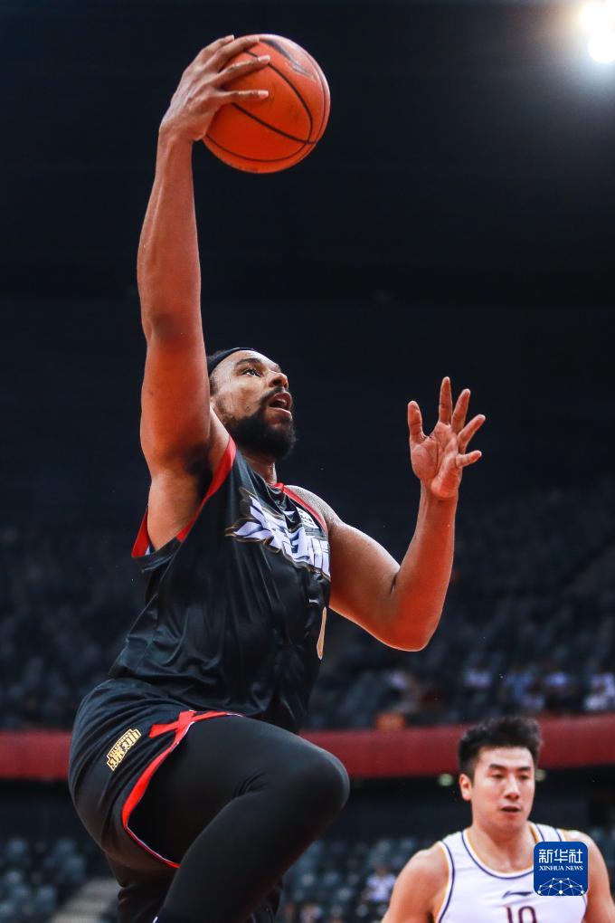 10月26日,深圳马可波罗队球员萨林杰(前)在比赛中上篮。新华社发(彭志刚摄)