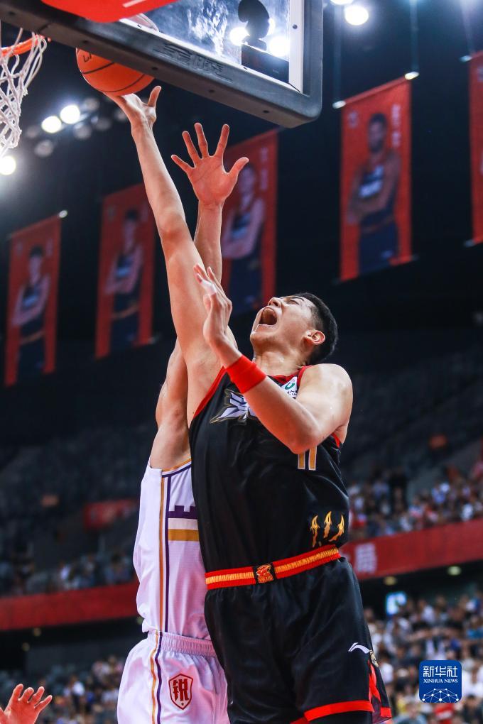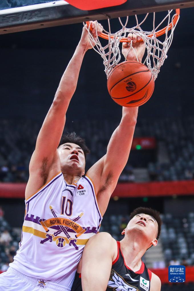 10月26日,北京控股队球员邹雨宸(左)在比赛中扣篮。新华社发(彭志刚摄)