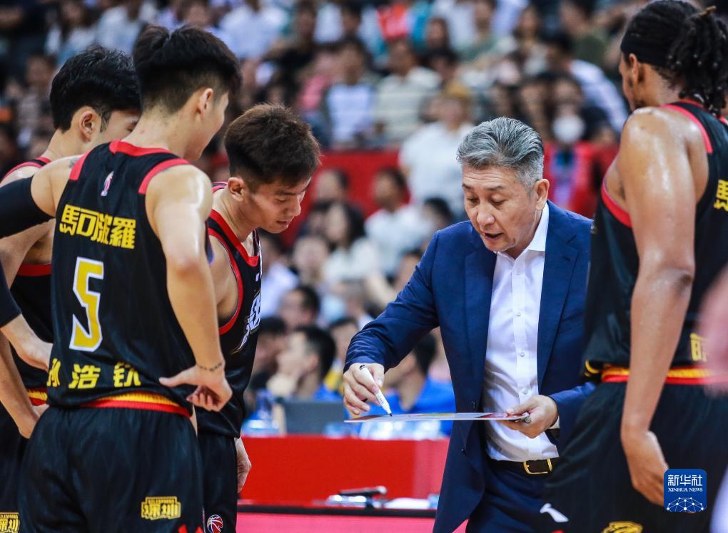 10月26日,深圳马可波罗队主教练郑永刚(右二)在比赛中布置战术。新华社发(彭志刚摄)