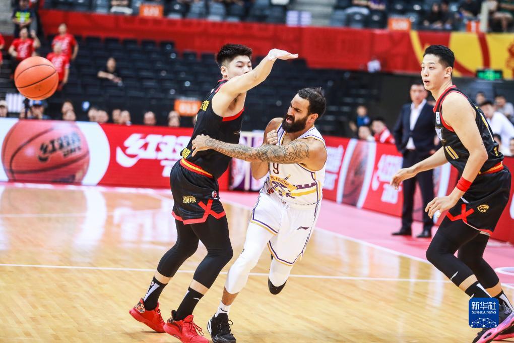 10月26日,北京控股队球员里勒(中)在比赛中传球。新华社发(彭志刚摄)