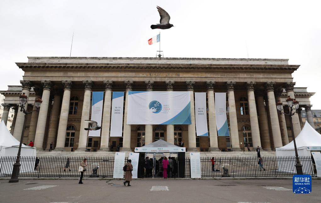 11月10日,鸽子飞过法国巴黎和平论坛会场。新华社记者 高静 摄