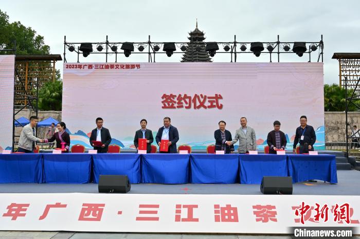 当天,三江油茶新品发布、三江油茶流转及产权证发放仪式、油茶采收机赠送仪式和三江油茶产销签约仪式先后举行,现场签约项目包括三江县油茶产业园建设、油茶全产业链合作、程阳八寨景区北区汽车营地及研学中心等。