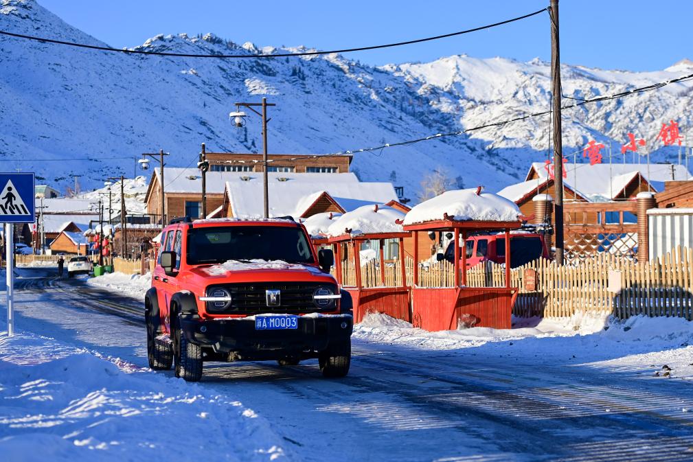 游客自驾来到新疆阿勒泰地区富蕴县可可托海镇塔拉特村(12月22日摄)。新华社记者 丁磊 摄