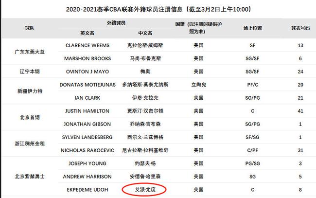 北京时间3月2日,CBA官网更新了本赛季外援注册信息,北控外援艾派-尤度注册成功,他将能够出战今晚的京城德比,对阵旧主。