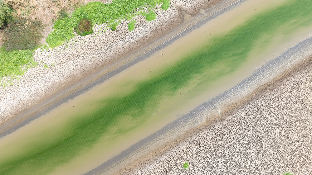 ↑这是4月25日在墨西哥米却肯州拍摄的帕茨夸罗湖裸露的湖床(无人机照片)。位于墨西哥米却肯州的帕茨夸罗湖原本是墨西哥传统的捕鱼之地和旅游胜地,如今受干旱影响,湖床裸露龟裂,濒临枯竭。新华社记者 李梦馨 摄