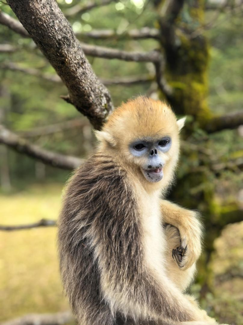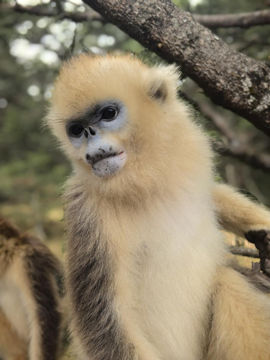 4月16日,神农架一只刚成年的野生金丝猴。神农架是世界金丝猴分布最东端的地区,该种群是数量最少、最濒危的一个典型的孤立“小种群”。 神农架地区现分布有金丝猴11个种群、数量1618只,栖息地面积401平方公里。新华网记者 刘军 摄影
