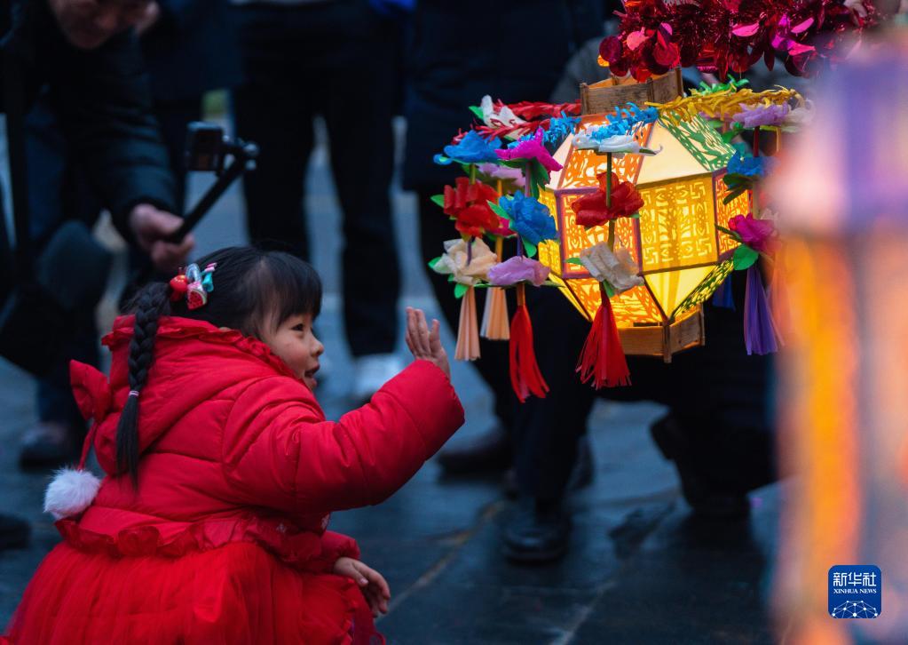 2月2日,在浙江省杭州市淳安县里商乡,小朋友在观看里商仁灯。